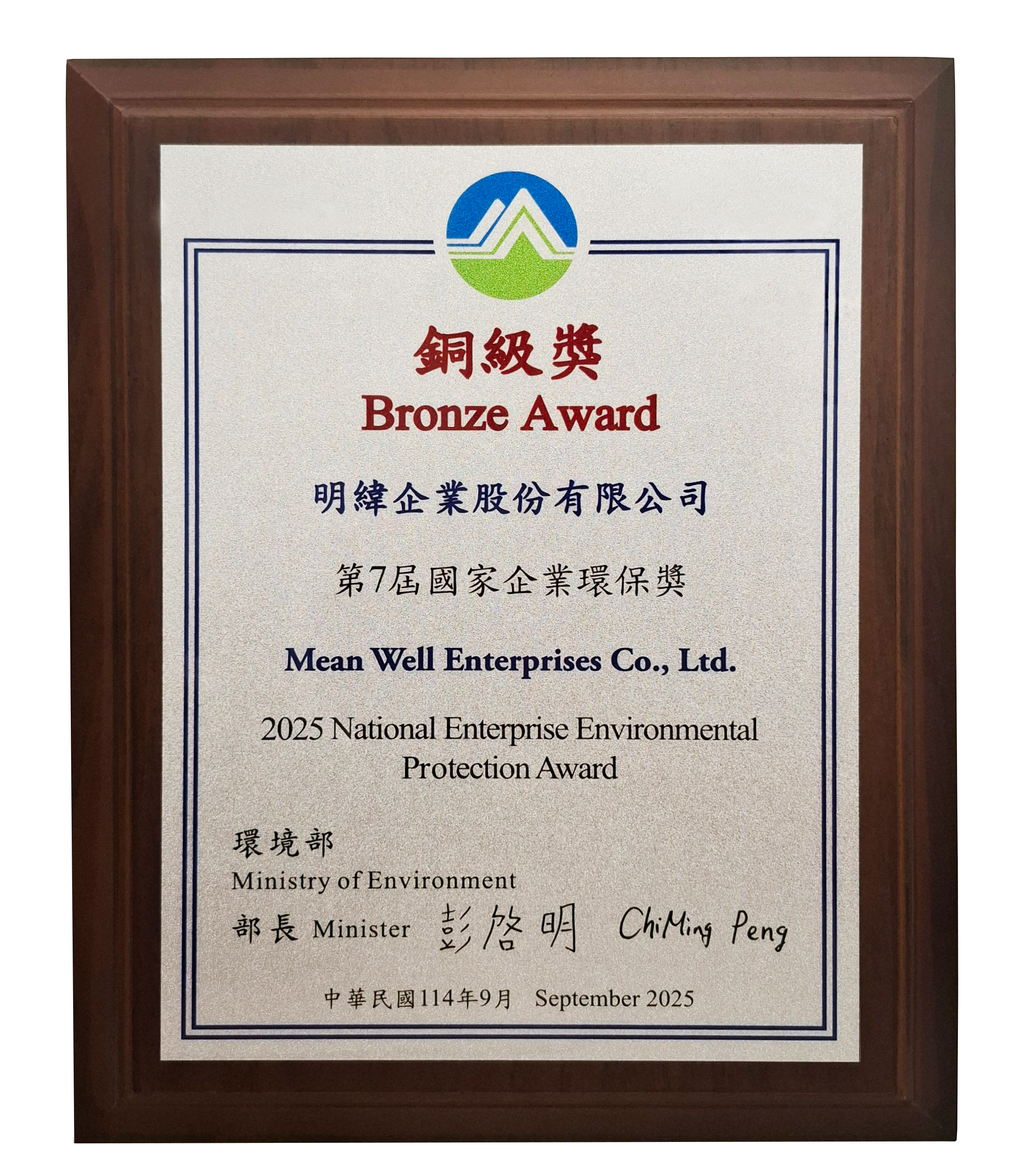 獲選行政院環境部頒發「 企業環保獎 」獎- 銅獎