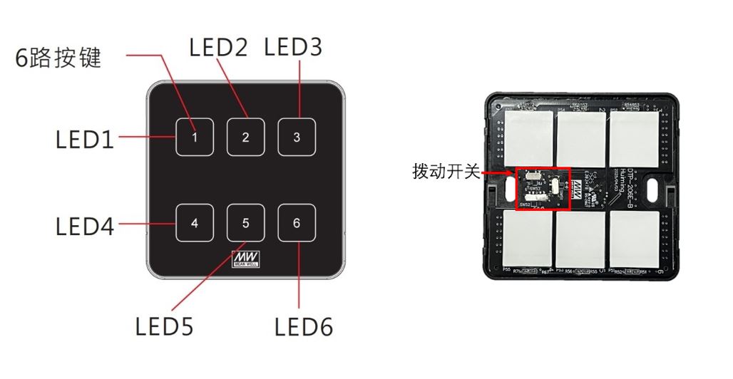 - 人性化互動:內(nèi)置撥動開關(guān),按鍵背光亮度可調(diào)(高亮、微亮、關(guān)閉),蜂鳴器聲音可開啟或關(guān)閉,兼顧黑暗環(huán)境操作便利性與靜音需求;支援快速切換背光功能與回饋功能(符合DALI IEC 62386-332標(biāo)準(zhǔn))